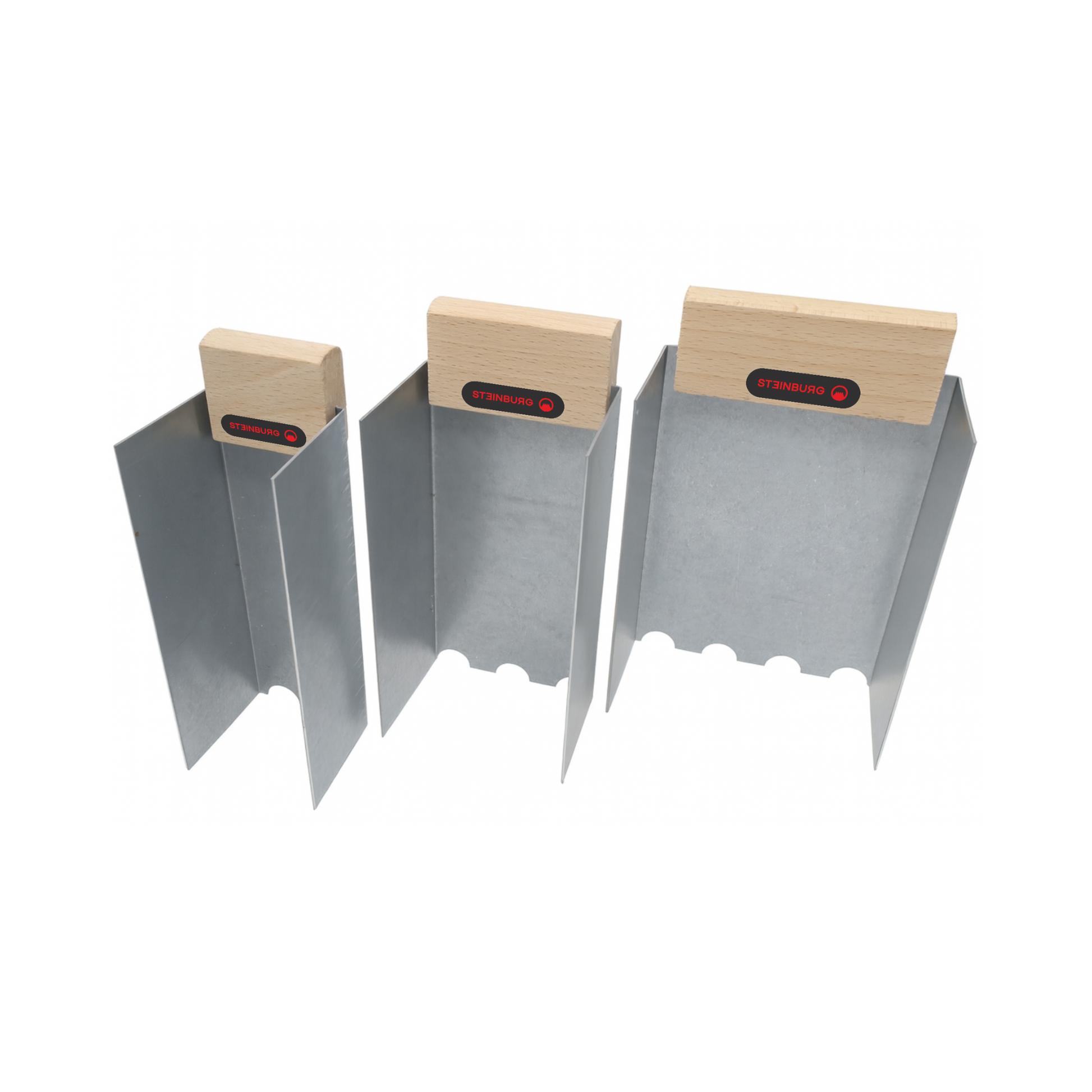 KLEBEKELLEN-SET 3-TEILIG – Das STEINBURG Set aus drei hochwertigen Klebekellen wurde speziell für präzises Arbeiten in Ecken, Kanten und schwer zugänglichen Bereichen entwickelt.